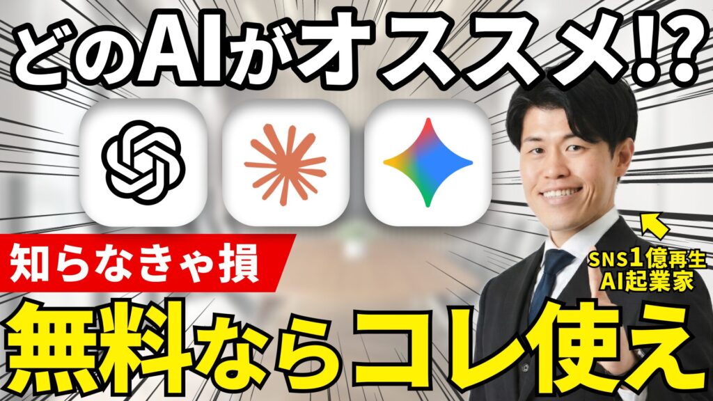 【2026年2月最新】AI初心者はもう迷わない!無料で使うならこのAI!ChatGPT・Gemini・Claude徹底比較