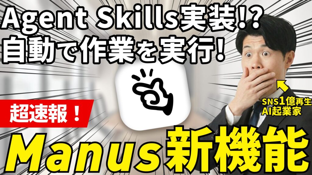 「AIの操作、もっと楽にならないかな…」と思っていませんか? 実は、Manusのエージェントスキルズ(Agent Skills)という機能を使えば、いつもやっている面倒な作業をAIに丸投げして、自動化することができます。この記事では、AI初心者でも迷わないように... -
