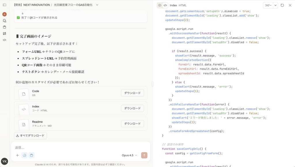 - 構築の核心:Claudeとの対話でコードを生成