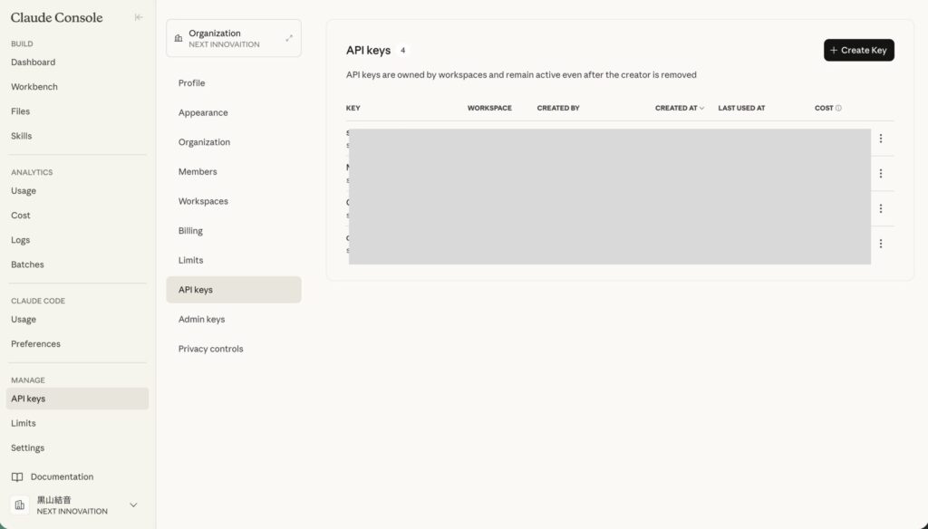 4. 次に「ClaudeのAPIキー」の入力を求められます。同様に、Claudeの公式サイトからAPIキーを取得し、貼り付けます。