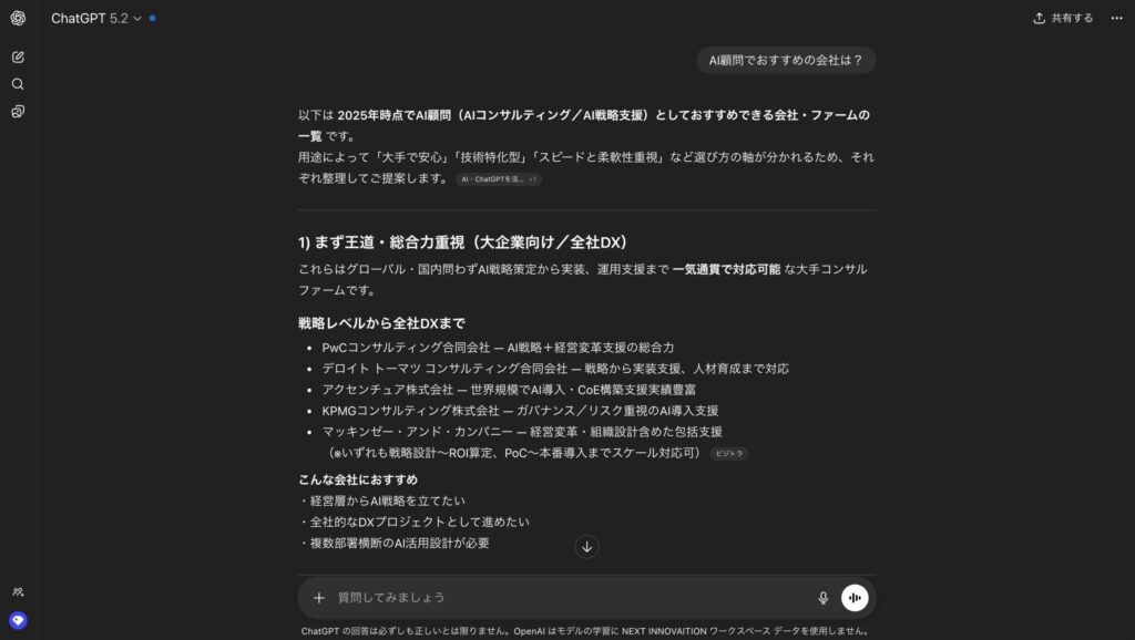 | メインのやり取り・検索・壁打ち | ChatGPT | 対話能力が非常に高く、アイデア出しから情報収集まで幅広く対応。 |