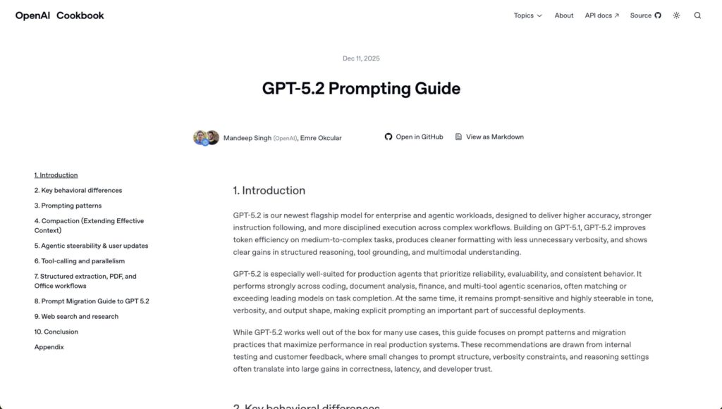 このマニュアルは、OpenAIの内部テストや顧客からのフィードバックに基づいて作成された公式ガイド[1]を基に、プロンプトの構造、冗長性の制約、推論設定などを少し変えるだけで、精度、応答速度、そして開発者の信頼性を大幅に向上させるための実践的なノウハウを提供します。