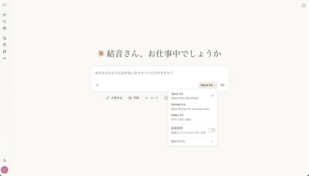 | Sonnet(ソネット) | 竹 | バランス型。十分な性能と手頃なコスト | 日常の質問、文章作成、一般的な作業全般 |