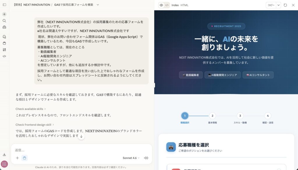筆者が最も頻繁に使っているのがこれです。Google Apps Script(GAS)というGoogleスプレッドシートやGmailを自動化するプログラムを、Claudeに書いてもらえます。プログラミングの知識がなくても、「何を自動化したいか」を日本語で伝えれば、そのまま動くコードを出力してくれます。