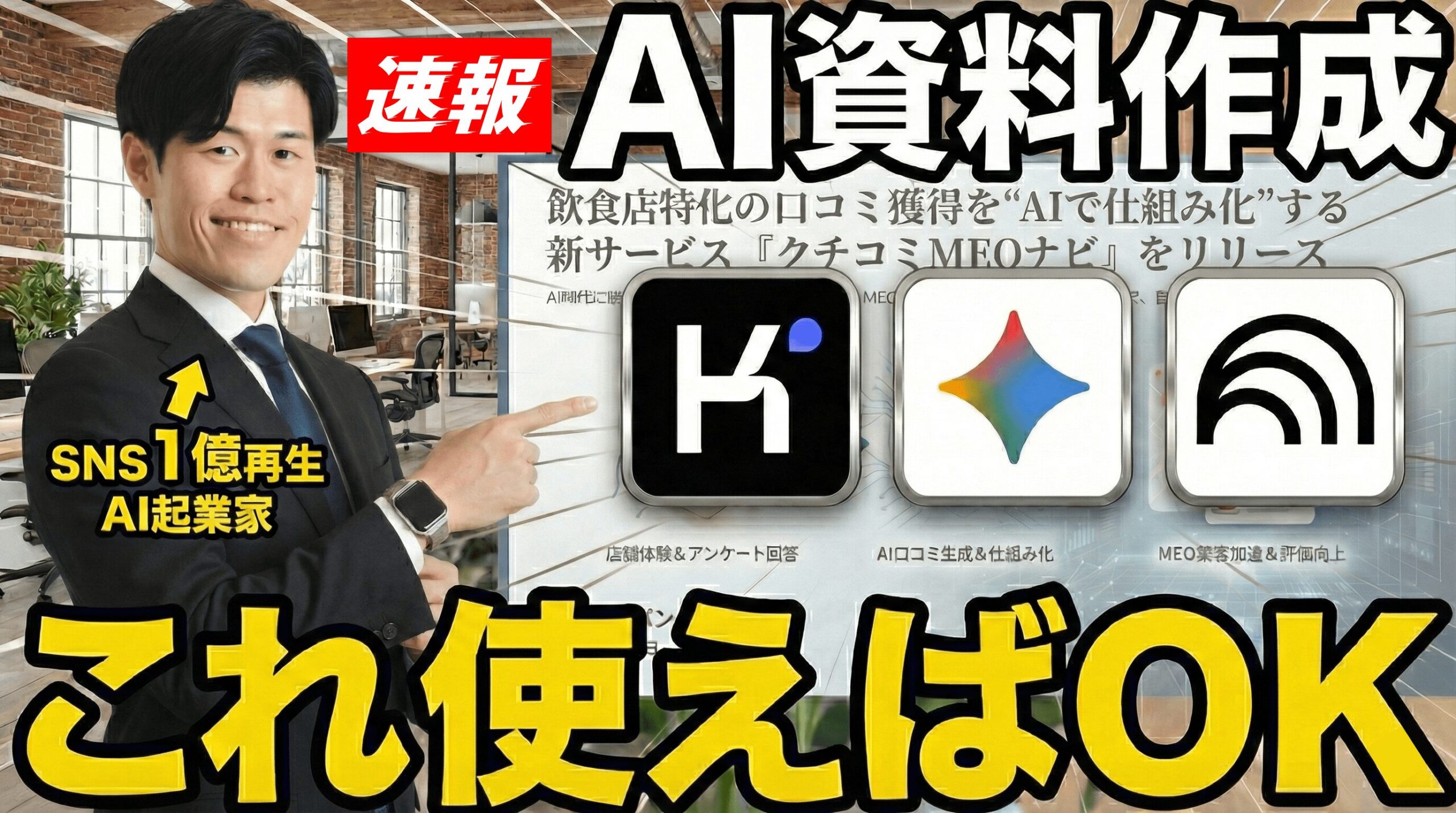 今回の動画で作成された「クチコミMEOナビ」のプレゼン資料は、Kimi Agentic Slidesの実力を示す絶好の事例です。この資料は、飲食店が抱える「口コミを集めるのが難しい」という課題に対し、AIを活用して解決策を提案する新サービスの企画書としてかなり高クオリティではないでしょうか!?